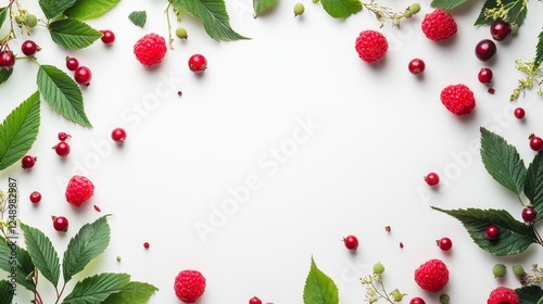 Fresh Berries and Green Leaves Arrangement on Light Background