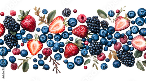 Fresh berry medley, strawberries, raspberries and blueberries, cut out transparent