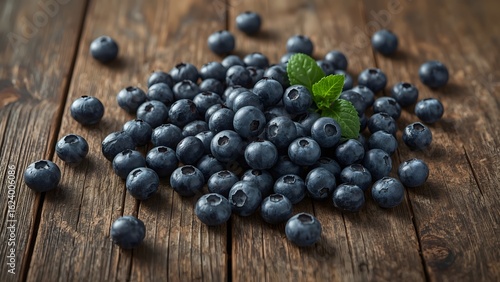 Fresh Blueberries with Mint Leaves on Rustic Wooden Table