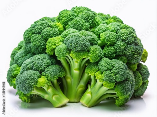 Fresh Broccoli Florets - Close-up, White Background, Copy Space