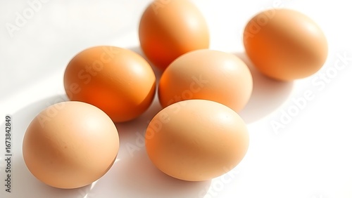 Fresh brown eggs on a white background, emphasizing simplicity and natural food.