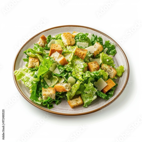 Fresh Caesar salad with crispy croutons, romaine lettuce, parmesan cheese, and creamy dressing on plate, Ai Generation