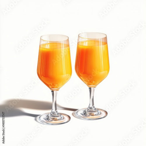 Fresh carrot and orange juice combo in two glasses, isolated on white with soft shadows