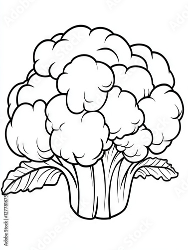 Fresh Cauliflower Vegetable Clipart Line Art Black and White Illustration Healthy Food Drawing