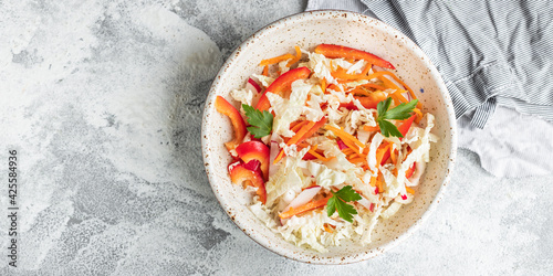 fresh Chinese cabbage salad vegetable pepper, radish, carrot snack vegan or vegetarian healthy meal top view copy space food background keto or paleo diet