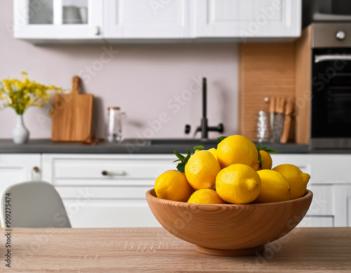 Fresh Citrus Vibes Lemons in a Modern Kitchen Bowl