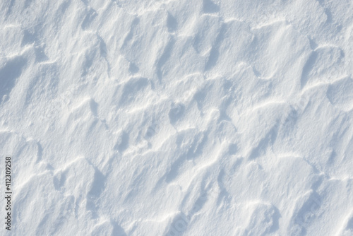 Fresh clean white snow background texture. Winter background with frozen snowflakes and snow mounds. Snow lumps. Seasonal landscape details. Cold weather.