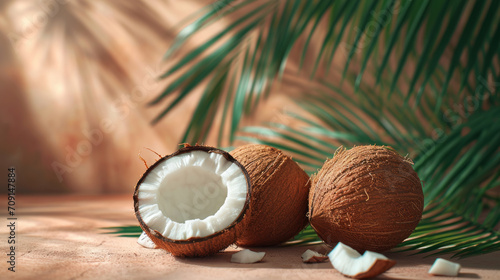 Fresh coconuts on a Studio background, creative flat lay healthy food concept, Free Copy Space