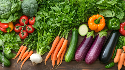 Fresh Colorful Vegetables Arranged on a Wooden Table Background