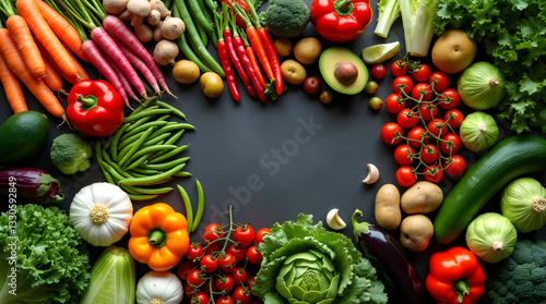 Fresh Colorful Vegetables Flat Lay Dark Background Healthy Food