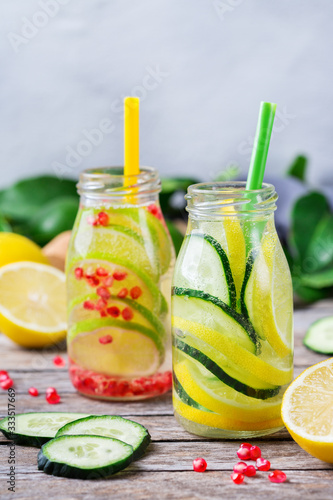 Fresh cool lemon cucumber rosemary infused water detox drink