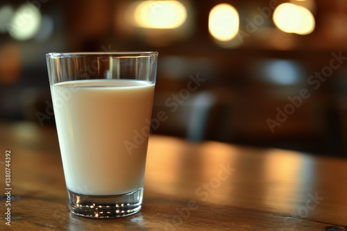 Fresh Creamy Milk in a Clear Glass on Wooden Table Background