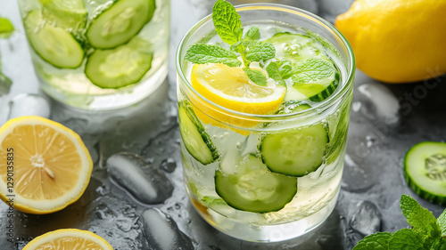 Fresh Cucumber Lemon Water with Mint leaves in a glass for Summer Hydration