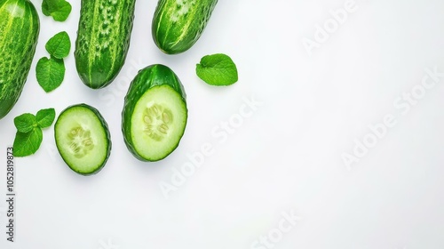 Fresh cucumber on a clean white backdrop, showcasing its vibrant green color without distractions from a blurred backdrop.