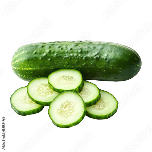 Fresh cucumber slices are perfect for salads, healthy meals, or refreshing drinks. Their vibrant color and textures enhance various food projects and marketing efforts.