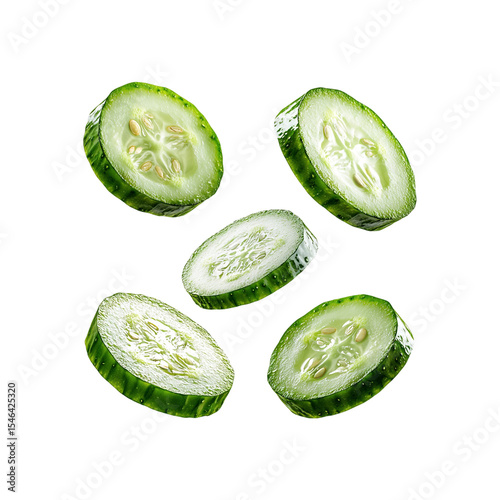 Fresh cucumber slices floating mid-air png