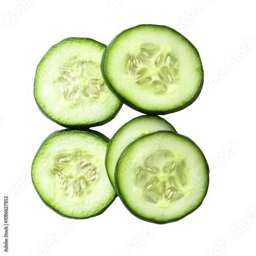 Fresh cucumber slices isolated on transparent background, healthy food concept.