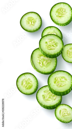 Fresh Cucumber Slices on White Backdrop Invigorating Culinary Ingredient Preparation and Refreshment