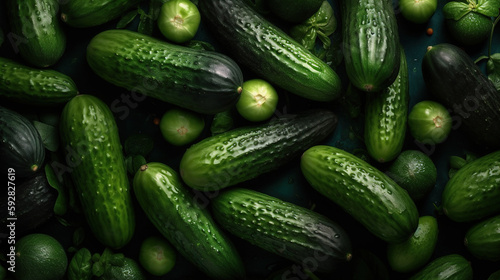Fresh Cucumbers, Fresh from the Field, Top-Down View of Seasonal Vegetable Products - Generative AI