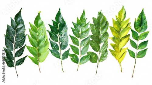 Fresh Curry Leaves Bunch on White Background