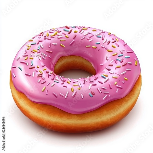 Fresh doughnut with pink icing and sprinkles isolated on white background