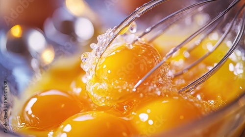 Fresh Egg Yolks in a Mixing Bowl with Whisk