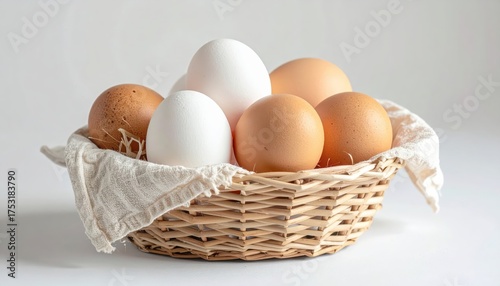 Fresh eggs displayed in rustic basket natural eggs in basket offer wholesome culinary delight