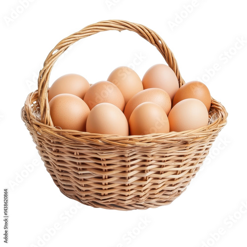 Fresh farm eggs in a woven basket ready for cooking or baking at a home kitchen