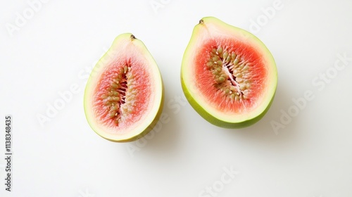 Fresh Figs Sliced in Half on White Background Showcase Vibrant Pink Interior