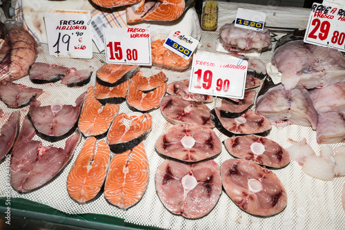 Fresh fish variety for sale at seafood market, Palma, Mallorca
