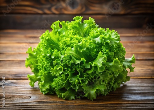 Fresh Frisee Lettuce with Crisp Leaves on a Wooden Table, Ideal for Healthy Eating and Salads