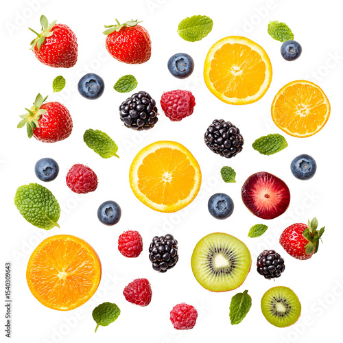 Fresh Fruit Mix Strawberries Raspberries Blackberries Blueberries Oranges Kiwi Mint