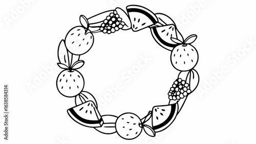 Fresh fruit wreath illustration perfect for summer designs, food blogs, and healthy themes