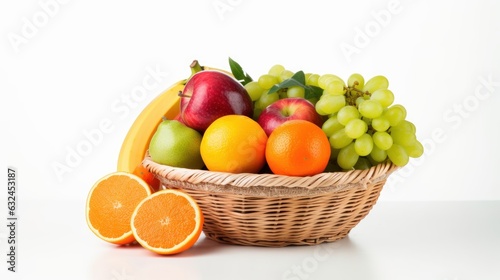 Fresh Fruits in Basket isolated on White Background, Healthy fruits Rich in Vitamins. Generative Ai
