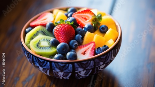 fresh fruits, including strawberries, blueberries, grapes, kiwi, and mango,