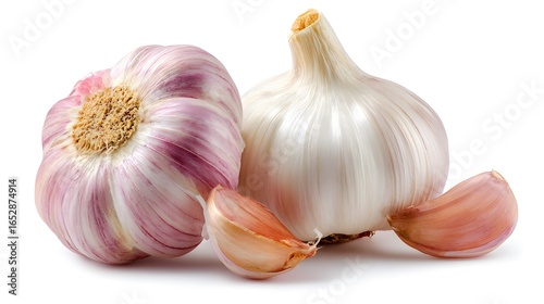 Fresh garlic bulbs and cloves, perfect for culinary creations. These aromatic ingredients are a staple in many cuisines