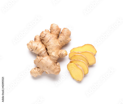 Fresh ginger on white background