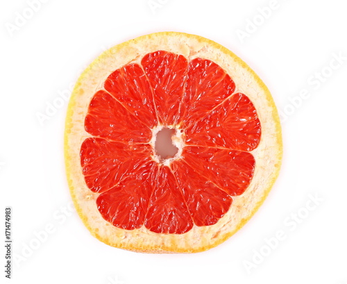 fresh grapefruit slices isolated on white background, top view