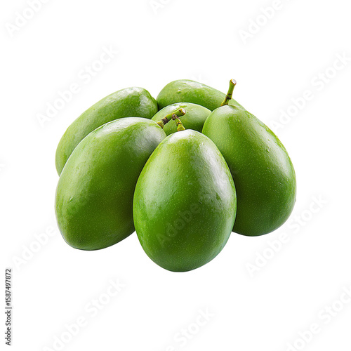 Fresh green ambarella (hog plum) fruits with water droplets, isolated on white; tropical harvest for healthy nutrition, juices, chutneys, salads and summer recipes.