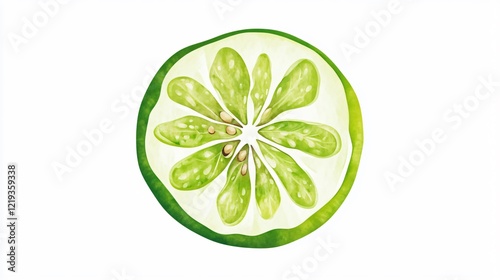 Fresh Green Apple Fruit Slice on Plant, Wide Angle Centered View
