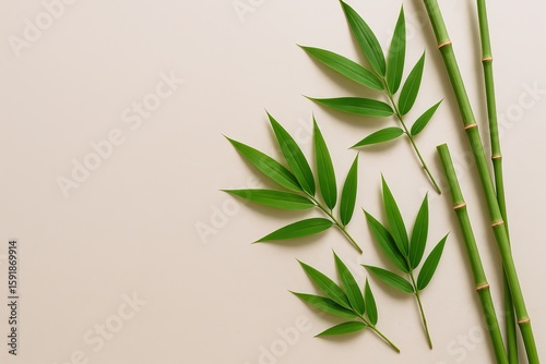 Fresh green bamboo leaves and stalks with natural minimalist aesthetic for decoration.
