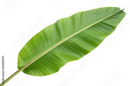 Fresh green banana foliage tropical plant leaf on a featureless space isolated on transparent background