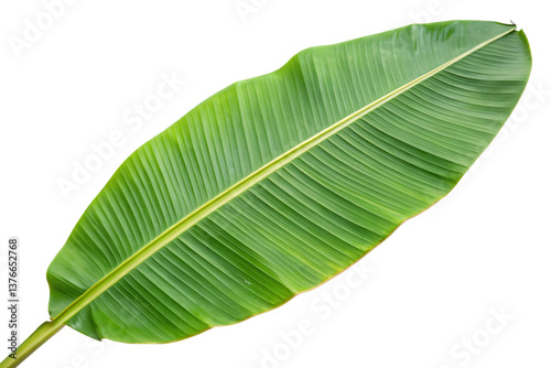 Fresh Green Banana Leaf Isolated on White Background, Natural Tropical Foliage