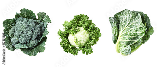 Fresh Green Broccoli, Cabbage, and Savoy Cabbage Isolated on Black Background, and Savoy Cabbage Isolated on Bla