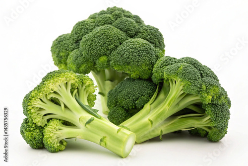 Fresh Green Broccoli Florets Isolated on White Background – Healthy Organic Vegetable