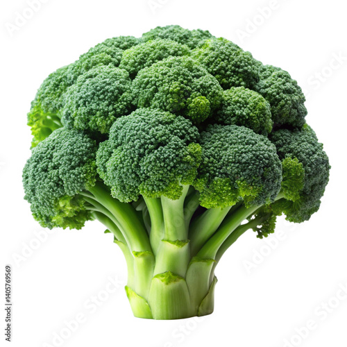 Fresh green broccoli head on Transparent Background, perfect for healthy eating and organic food concepts