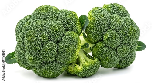 Fresh Green Broccoli Heads with Leaves on White Background
