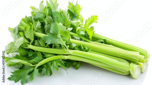 Fresh green celery bunch isolated on white background. Healthy organic vegetable. Ingredient for cooking.