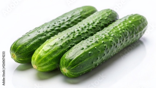 Fresh Green Chinese Cucumbers on White Background - High-Resolution Stock Photo