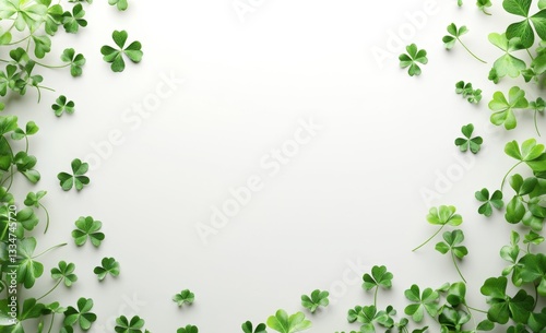 Fresh green clover leaves arranged in a frame on a white background